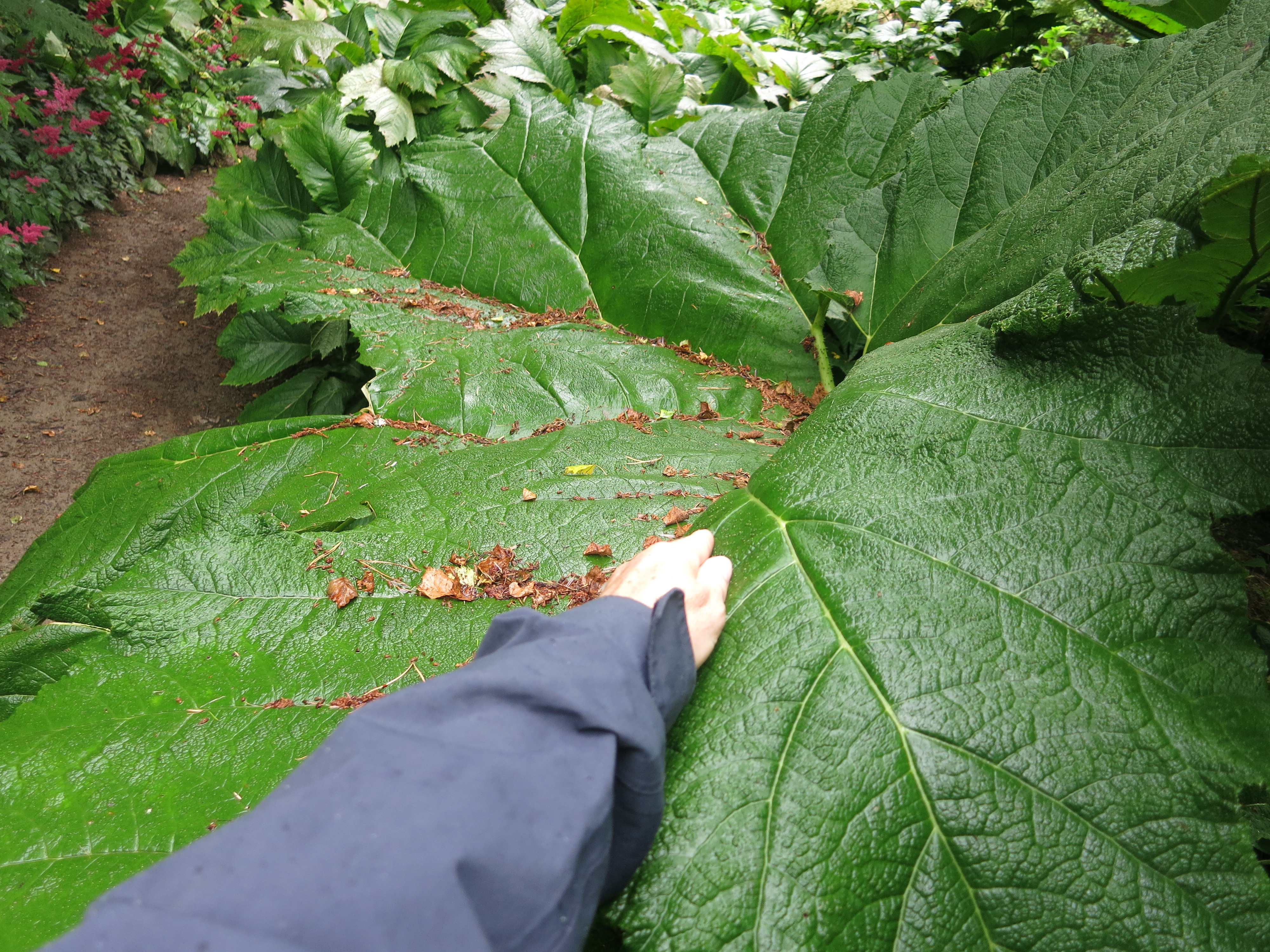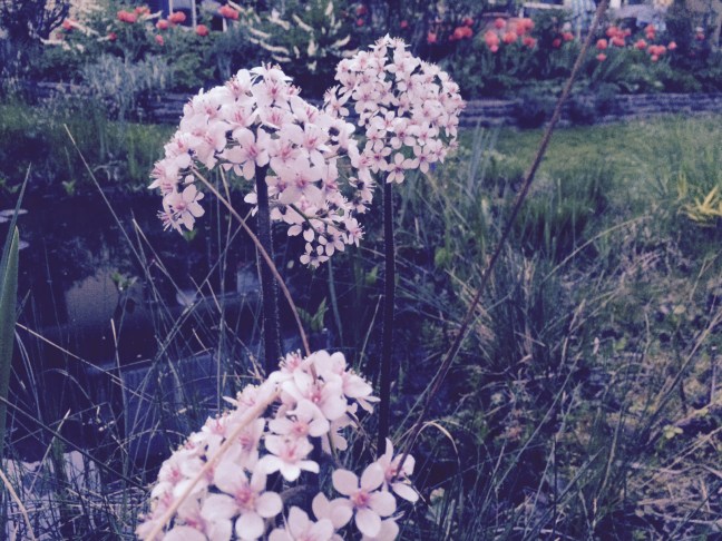 Wer noch nicht so geübt ist mit Stauden, der könnte Darmera möglicherweise mit einer jungen Gunnera manicata (Mammutblatt) verwechseln, die allerdings mit ihren riesenhaften Blättern später schon auffällig anders ist. Die Fotos stammen aus einem schottischen Garten, einfach Prachtexemplare, die mich motivierten, einen neuen Pflanzversuch zu starten. So hatte ich (zum zweiten Mal) im Herbst am Ufer eine neue Pflanze gesetzt. Leider ist sie bis jetzt nicht wieder aufgetaucht, damit kann ich sie vermutlich abschreiben auf nimmer wiedersehen. Wieviele Stauden ich schon pflanzte ohne sie im nächsten Jahr wiederzufinden – das ist eine andere Geschichte.